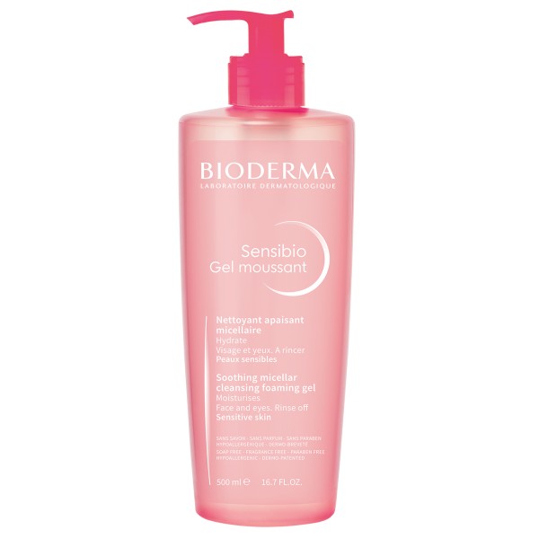 BIODERMA Sensibio Gel Moussant limpa e remove suavemente a maquilhagem do rosto e dos olhos. Hidrata e suaviza e acalma as irritações.