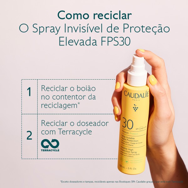 O Spray Invisível de Proteção Elevada FPS30 protege eficazmente o rosto e o corpo dos UVA/UVB, ao mesmo tempo que oferece uma ação antioxidante à pele mais sensível. A sua textura fluida, (com acabamento) invisível, penetra rapidamente e deixa na pele um perfume a verão. Uma fórmula clean, altamente sensorial e respeitadora do ambiente, para toda a família!