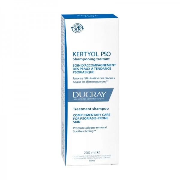 KERTYOL P.S.O. O champô de cuidado reequilibrante favorece a eliminação das placas secas e alivia o prurido* no couro cabeludo com tendência a psoríase.