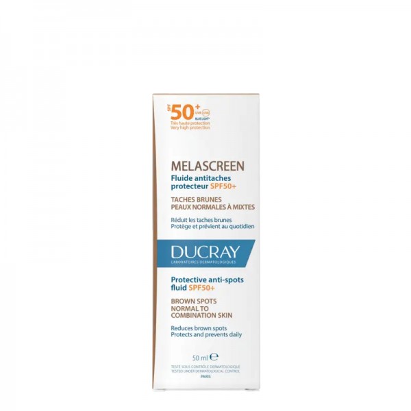 Melascreen fluido protetor anti-manchas SPF50+ é o 1º fluido diário anti-manchas com proteção muito elevada que previne e reduz o aparecimento de manchas castanhas, ao mesmo tempo que protege a pele contra raios UVB, raios UVA curtos e longos, luz azul e os efeitos nocivos da poluição.